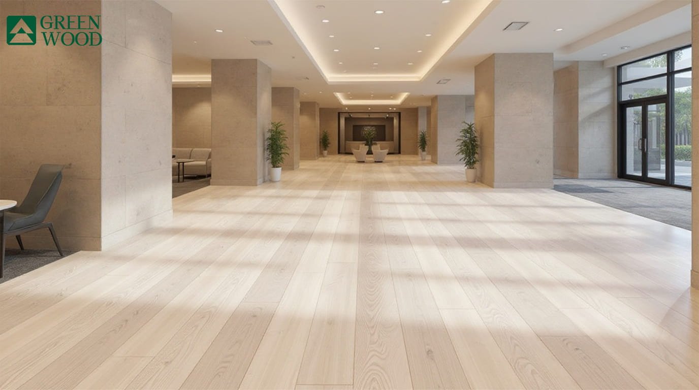 Oak Pudding Grande by Barlinek is a premium engineered hardwood flooring designed for refined residential and commercial interiors in the UAE. Featuring wide 2200 × 180 mm planks, this floor delivers a spacious and elegant visual flow ideal for luxury villas, apartments, and hospitality spaces. The light cream oak tone is enhanced by a white‑brushed surface, revealing natural grain while maintaining a clean, contemporary appearance. Finished with a matte lacquer, it reduces glare under strong daylight and artificial lighting, supporting modern UAE interiors with extensive glazing and constant air‑conditioning. Its engineered construction ensures improved dimensional stability, making Oak Pudding Grande a reliable, specification‑ready flooring solution for high‑end architectural projects.
