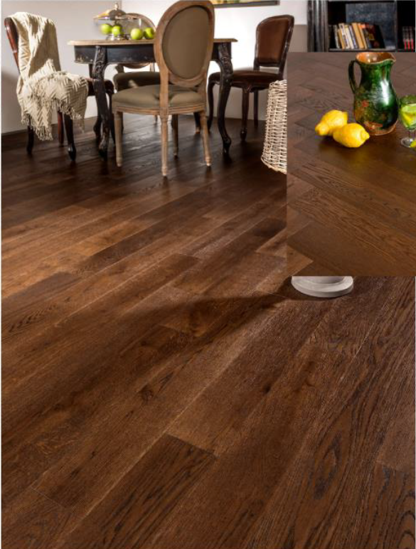 Its dark chocolate-inspired oak tone adds warmth, depth, and contrast to interiors without losing the natural movement of real timber. The silk mat finish softens the surface appearance and helps maintain the authentic tactile quality of the oak, making the floor feel both luxurious and natural.