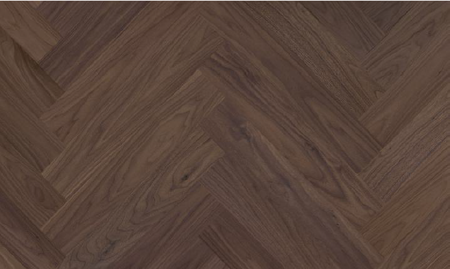 Each plank is engineered in 13 × 725 × 120 mm dimensions for precise herringbone installation. The Extra Matt Lacquer (Gloss 10–15%) finish enhances natural walnut tones while ensuring scratch resistance.